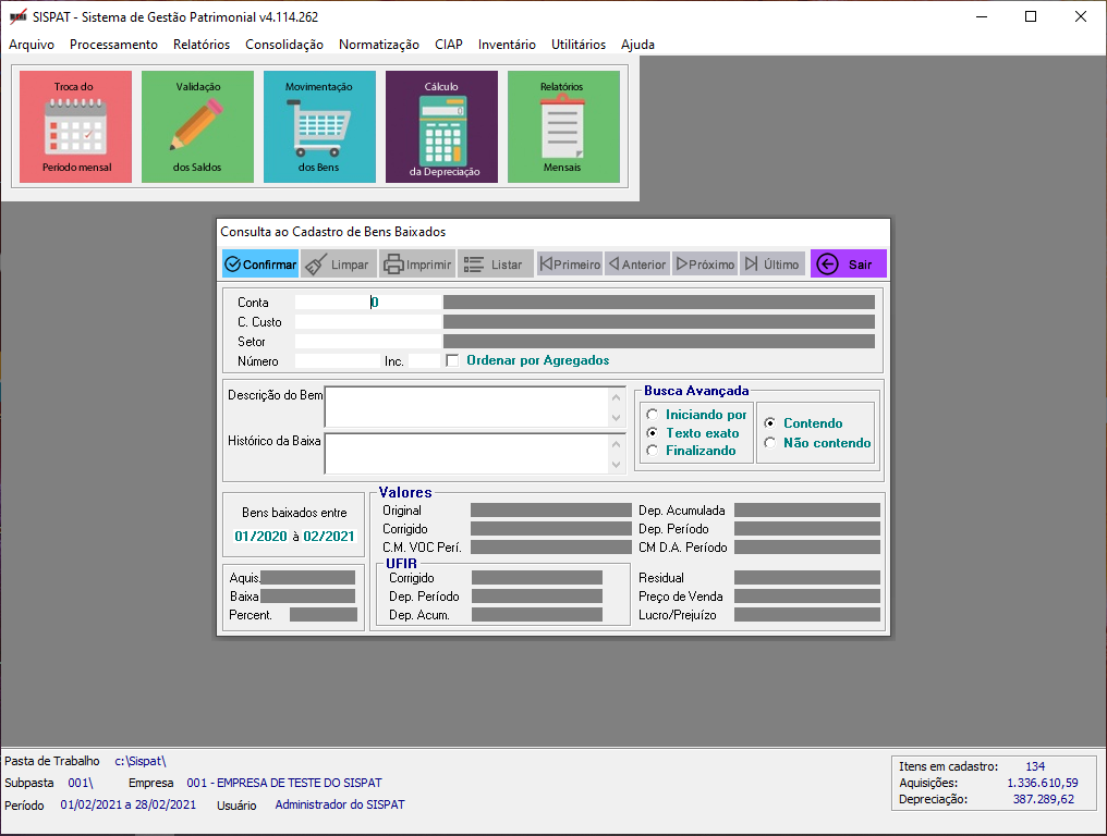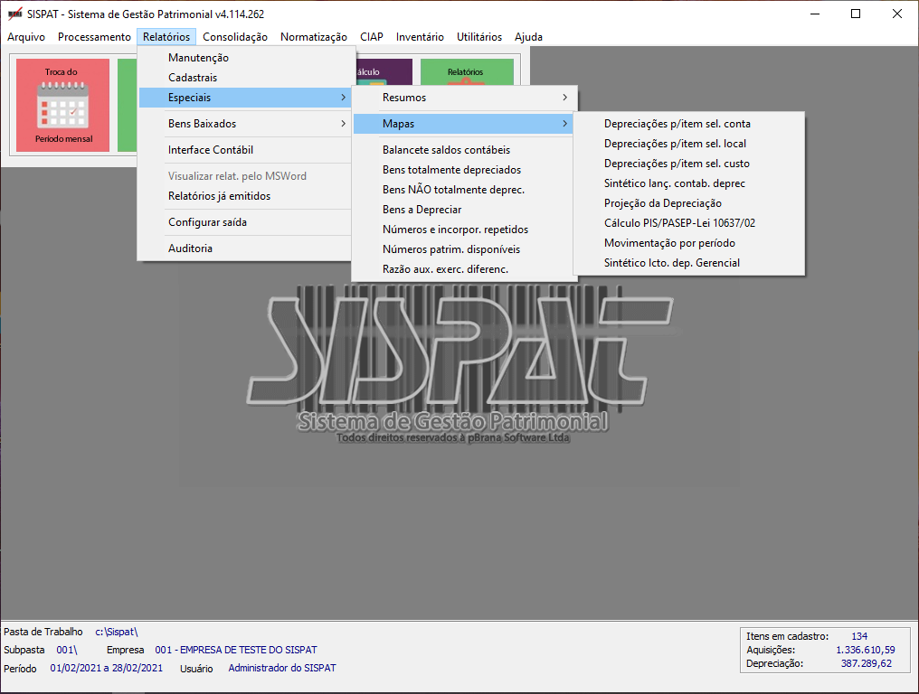 O Sispat - Sistema de Controle Patrimonial, disponibiliza relatórios estratégicos para os gestores e para a contabilidade.